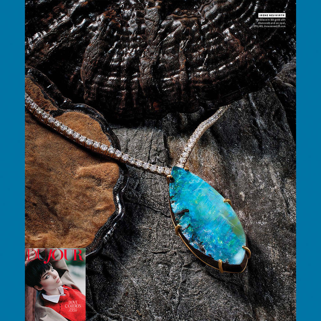 The magazine features our One of a Kind Diamond Tennis Necklace with Boulder Opal Pendant in their Winter 2023 issue.