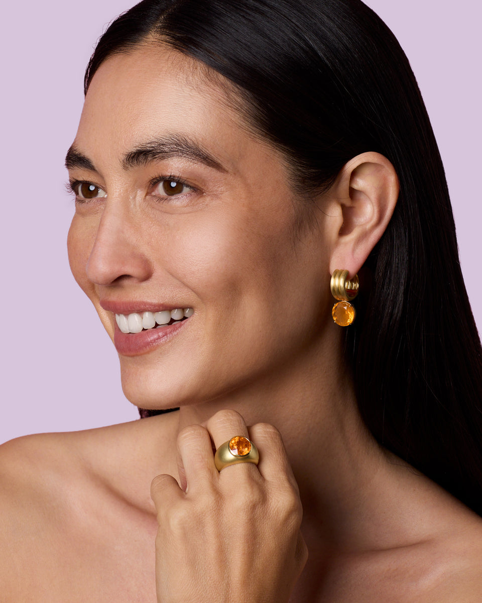 One of a Kind Round Stone Gemmy Puffed Gold Ring